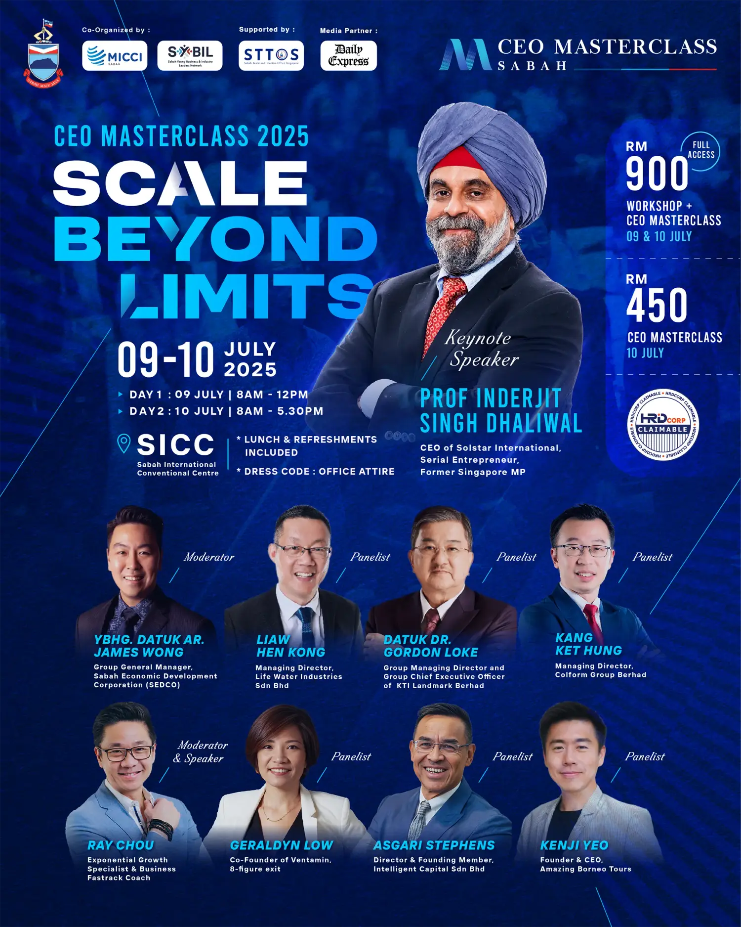 A high-level conference designed for Entrepreneurs, CEOs, and Business Leaders in Sabah, focused on strategic growth, leadership excellence, and industry innovation.